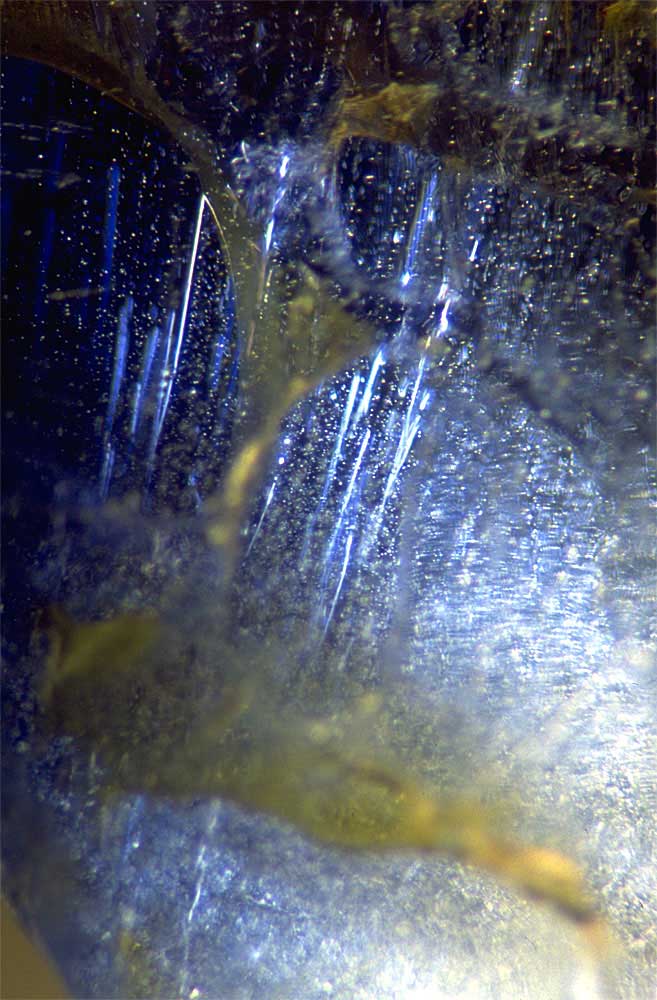 Lower right: Yellow stains in the cracks are clearly visible, as are the multitudes of gas bubbles.