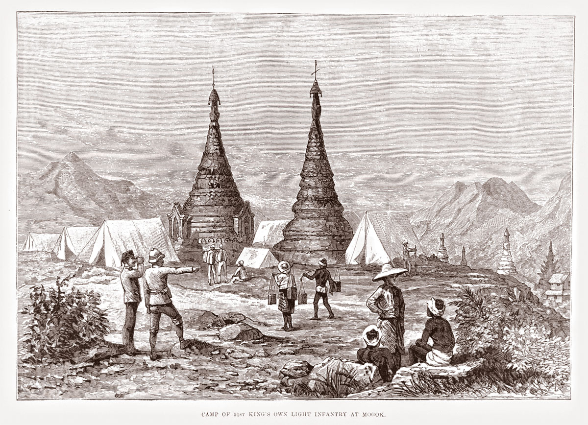 British camp at Mogok. (From the Illustrated London News, 19 Feb., 1887). Click on the image for a larger version.